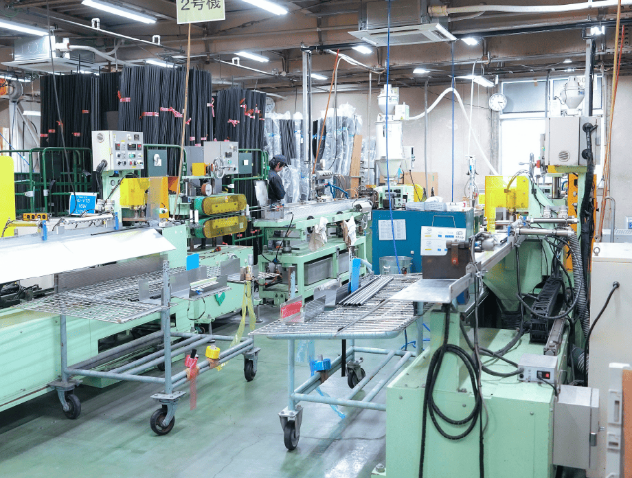 現在では自動車用外装部品の押出成形・二次加工を主力としなが